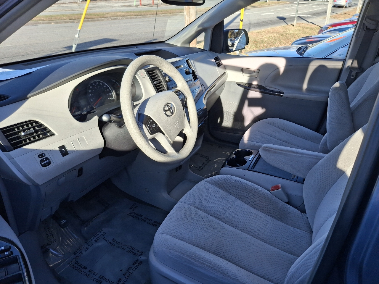 Turn heads as you cruise around town in this sleek Blue 2014 Toyota Sienna! With its stylish alloy wheels and rear spoiler, this van is sure to make a statement. Slip inside and enjoy the comfort of separate climate controls, adjustable driver's seat with power lumbar support, and a CD player to keep you entertained on those long road trips. Family-friendly features like child safety door locks and second and third-row removable seats make this vehicle perfect for all your adventures. Don't worry about safety - ABS brakes, traction control, and multiple airbags are all included for your peace of mind. Planning a road trip? The trip computer will keep you on track while you enjoy the convenience of power sliding side van doors and keyless entry. Worried about the history of the vehicle? No need to fret - a Carfax report is available for your review. Get ready to hit the road in style with this fully loaded Toyota Sienna!